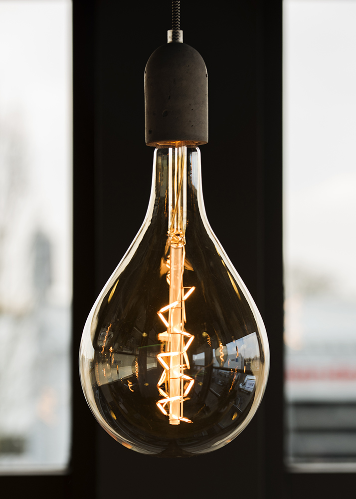 LED Leuchtmittel: LX Big Daddy Eigenschaften: 4W 2200K 180lm CRI>90 IP20 E27, dimmbar Filament Farben: Amber, Smoke Maße: D 165mm H 300mm