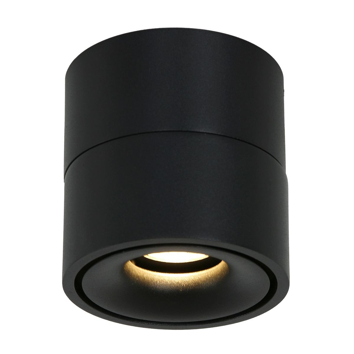 Aufbaustrahler: LX Fetz Eigenschaften: 10W 2700K 480lm Dimmbar Farbe: Schwarz Maße: D 78mm H 82mm Oberfläche: Aluminium